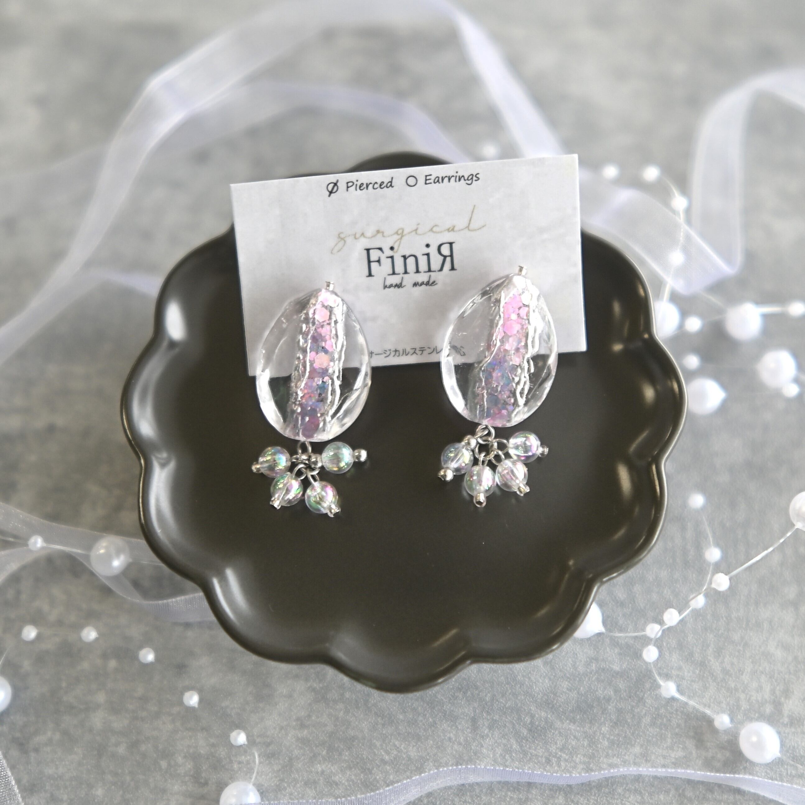 ハンドメイド あいあいわーく 送料無料 ピアス オリジナル サージカルステンレス 金属アレルギー対応 金アレ対応 クリアピアス オーロラピアス 透明ピアス 上品ピアス 大ぶりピアス ゆれるピアス きらきらピアス パールピアス 大人かわいいピアス シルバーピアス フェミニンアクセサリー 華やかピアス ブライダルアクセサリー デートピアス ギフトアクセサリー