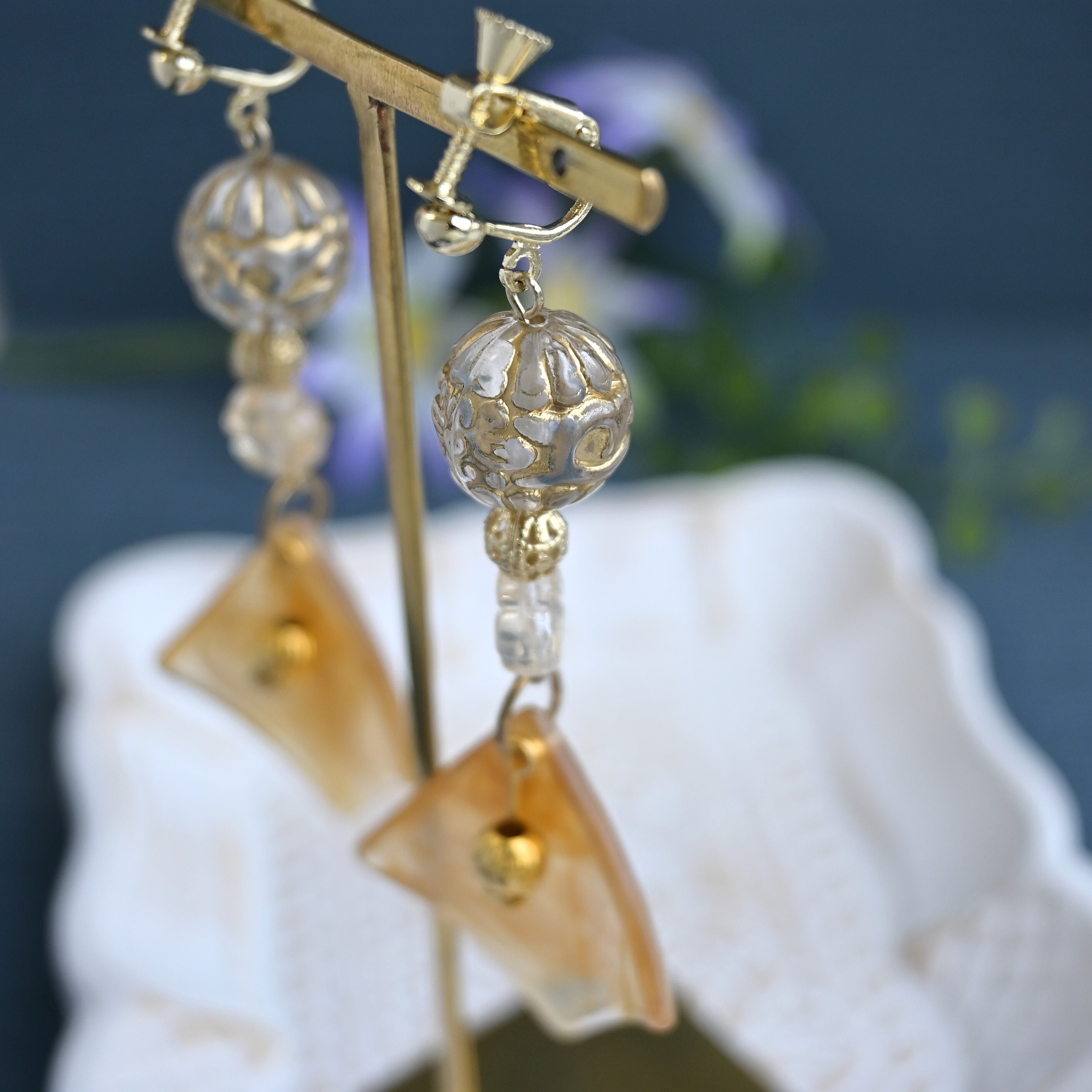 ノスタルジック・ゴールド|アクリル×ビーズのクラシカルイヤリング