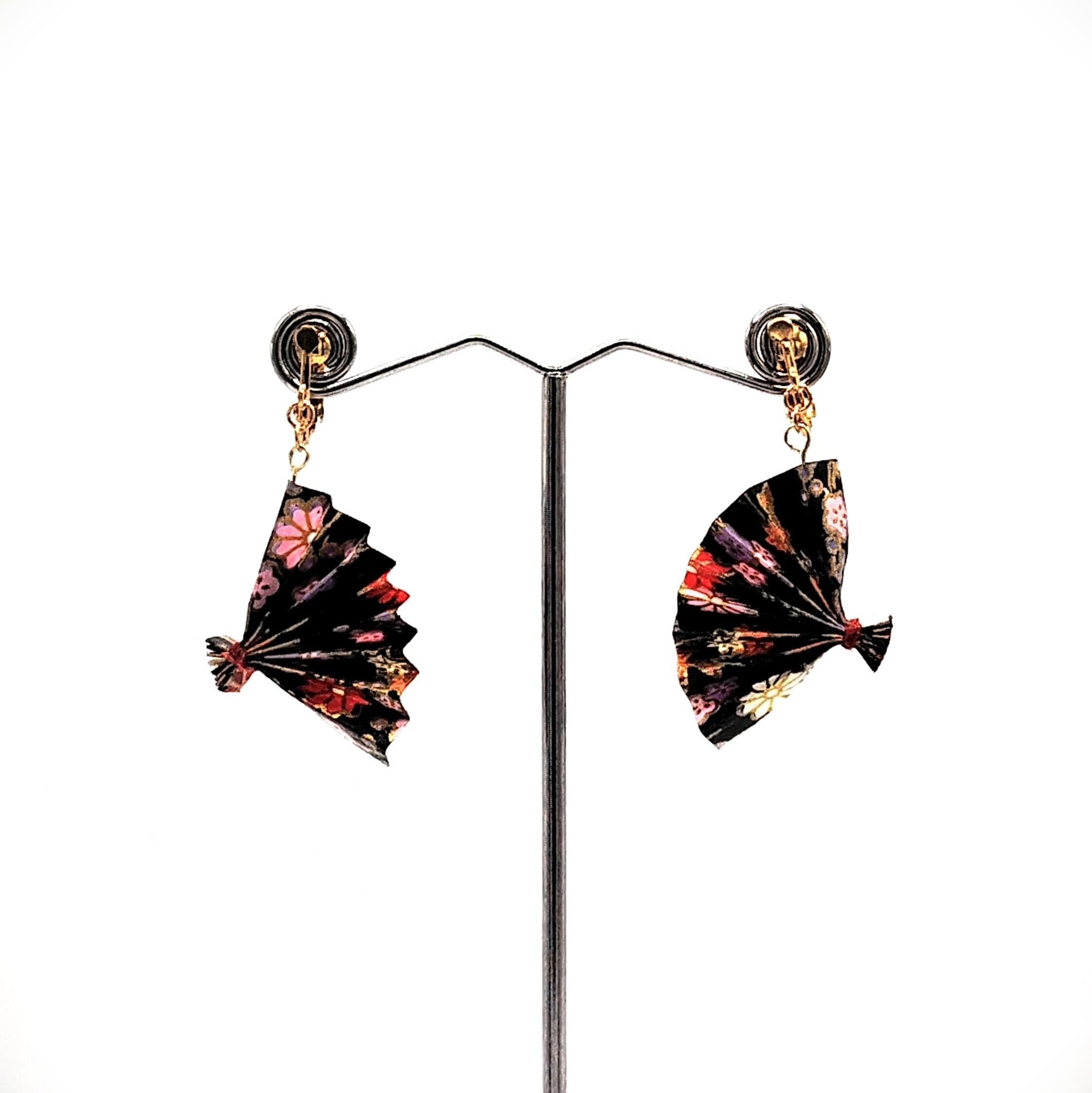 黒彩扇|友禅和紙の雅やか扇モチーフイヤリング