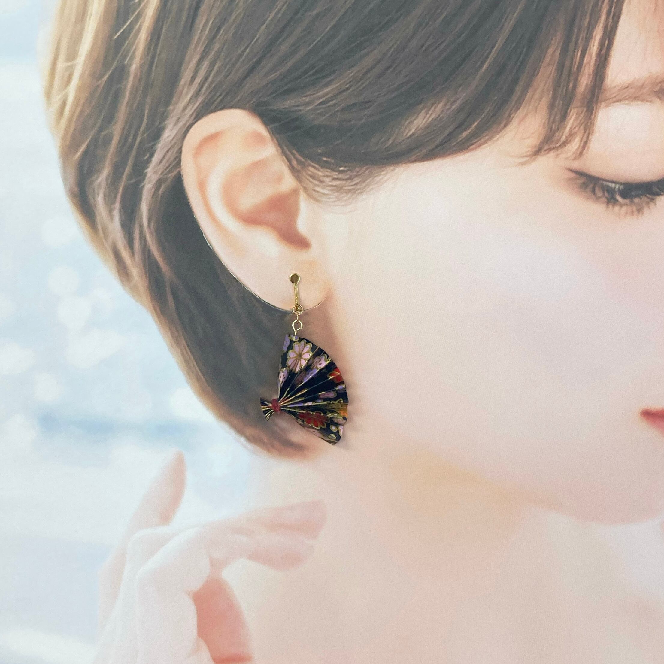 ハンドメイド あいあいわーく 送料無料 イヤリング ピアス オリジナル 金属アレルギー対応 金アレ対応 サージカル サージカルステンレス 扇子イヤリング 和紙イヤリング 友禅和紙 ハンドメイドアクセサリー 和モダン 和柄アクセサリー 軽量イヤリング 和装アクセサリー 和紙アクセサリー 花柄イヤリング 和風イヤリング 浴衣コーデ 着物コーデ 上品イヤリング 個性派アクセサリー 扇モチーフ 雅 手作りイヤリング 成人式アクセ 卒業式アクセ 入学式アクセ オリエンタルファッション 伝統×モダン 可憐 漆黒イヤリング 華やかアクセサリー 黒ベース 春アクセサリー 秋アクセサリー