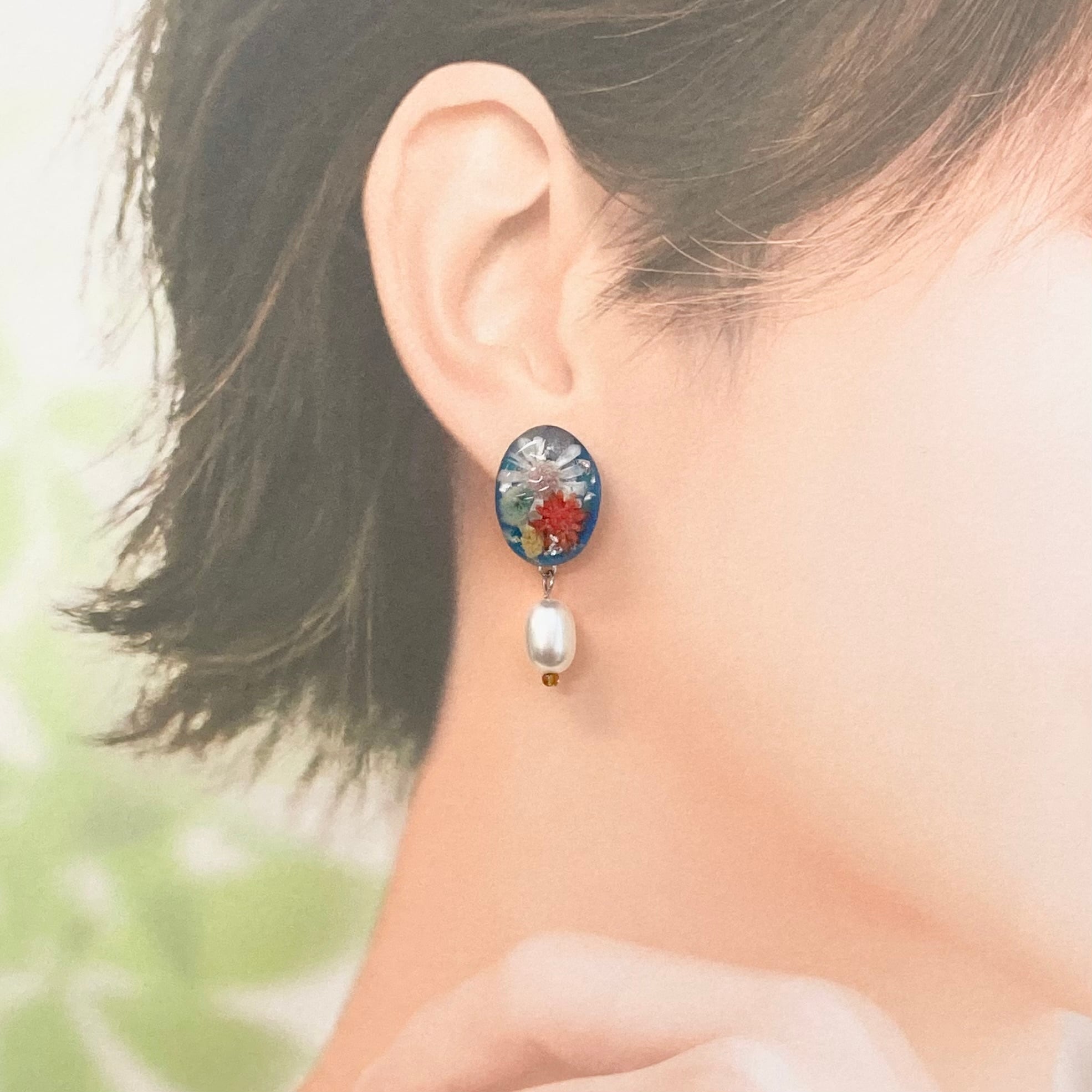 ハンドメイド あいあいわーく 送料無料 ピアス イヤリング オリジナル 透明感アクセサリー ドライフラワーアクセ レジンピアス 涼しげコーデ 季節を楽しむ 青系アクセ ナチュラルガーリー 花のある暮らし ゆれるアクセサリー デイリーアクセ