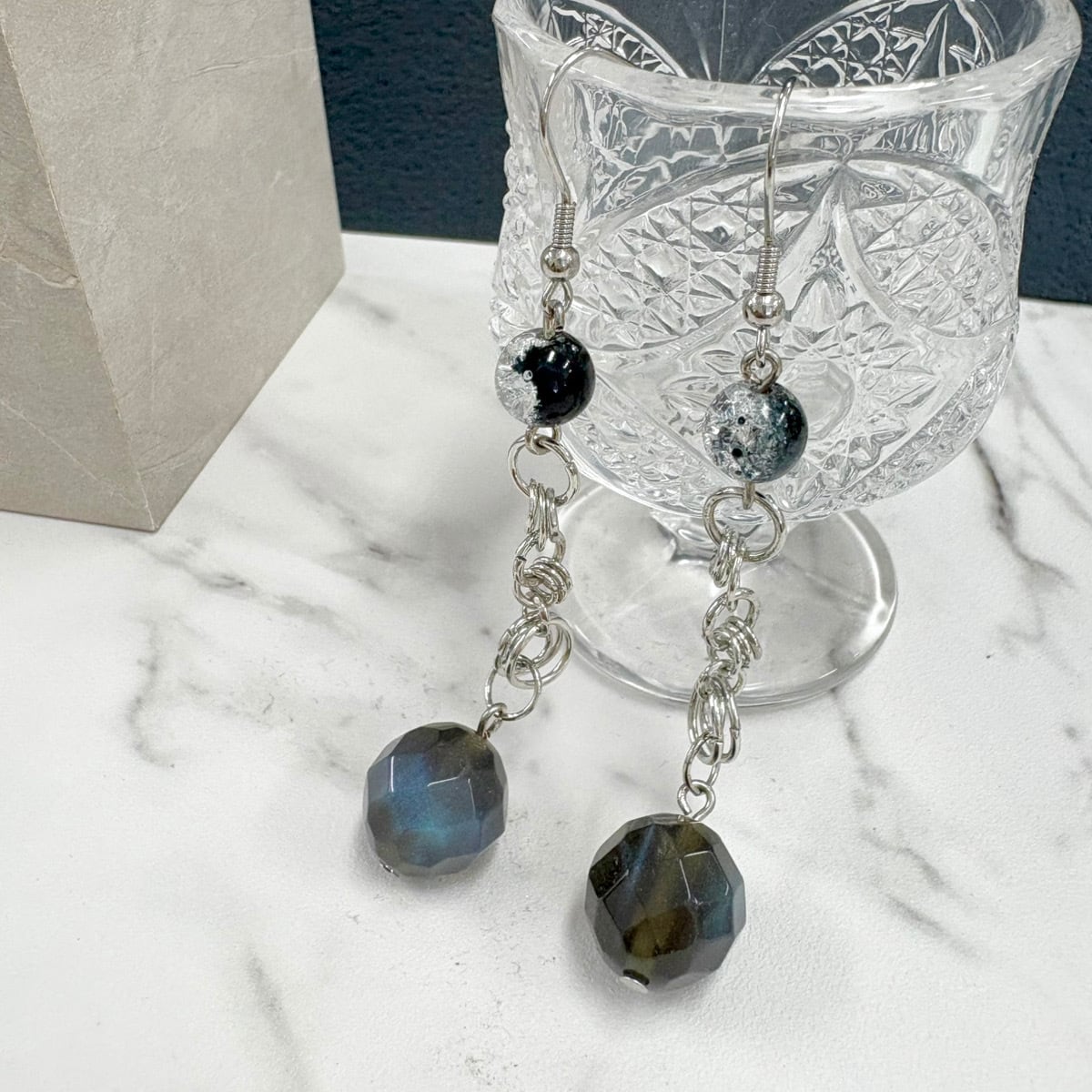 モノトーンのビーズとシルバーのリングチェーンを組み合わせた、ジェンダーレスなデザイン♪