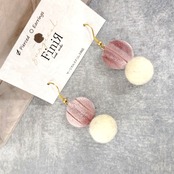 淡いモーヴカラーのベロア調パーツと、やわらかなアイボリーのポンポンを組み合わせた、上品でフェミニンなデザイン。