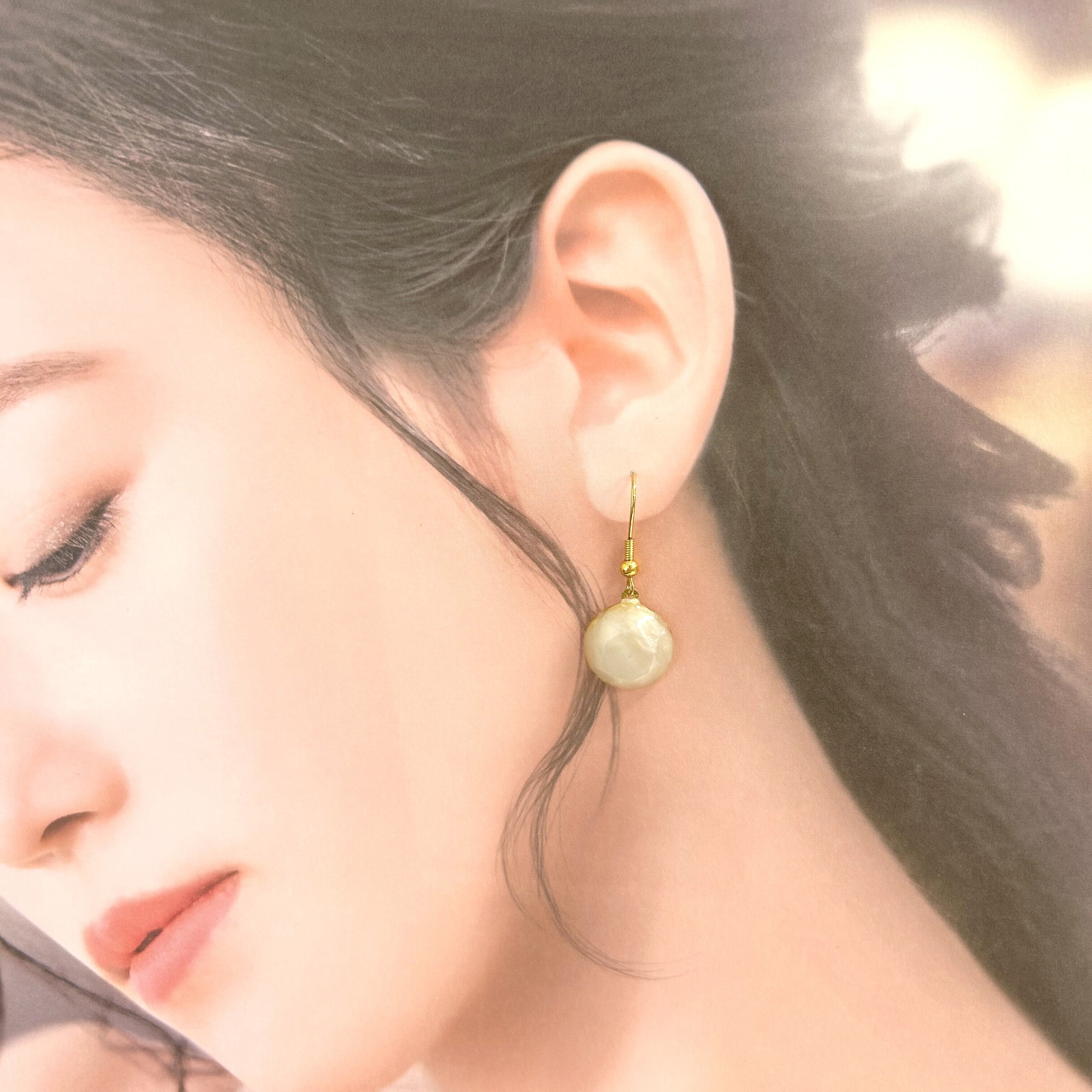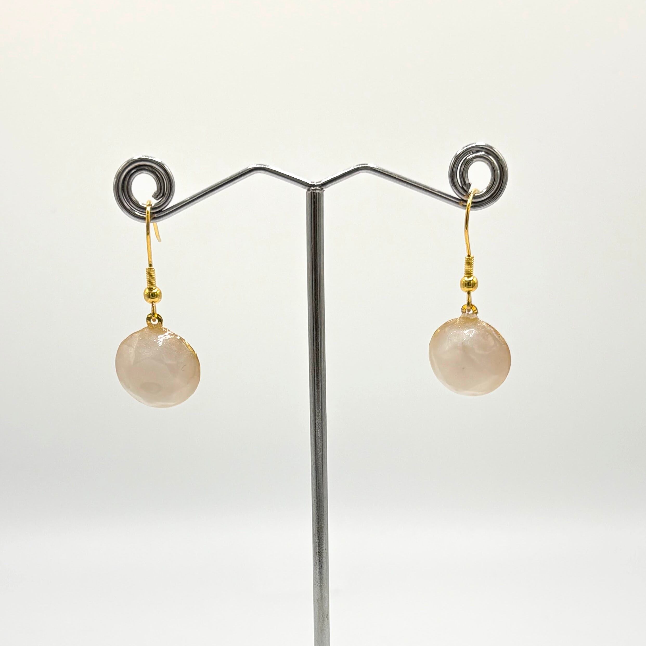 やわらかな乳白色のレジンが、まるで月の光を閉じ込めたようにとろりと輝くピアス。