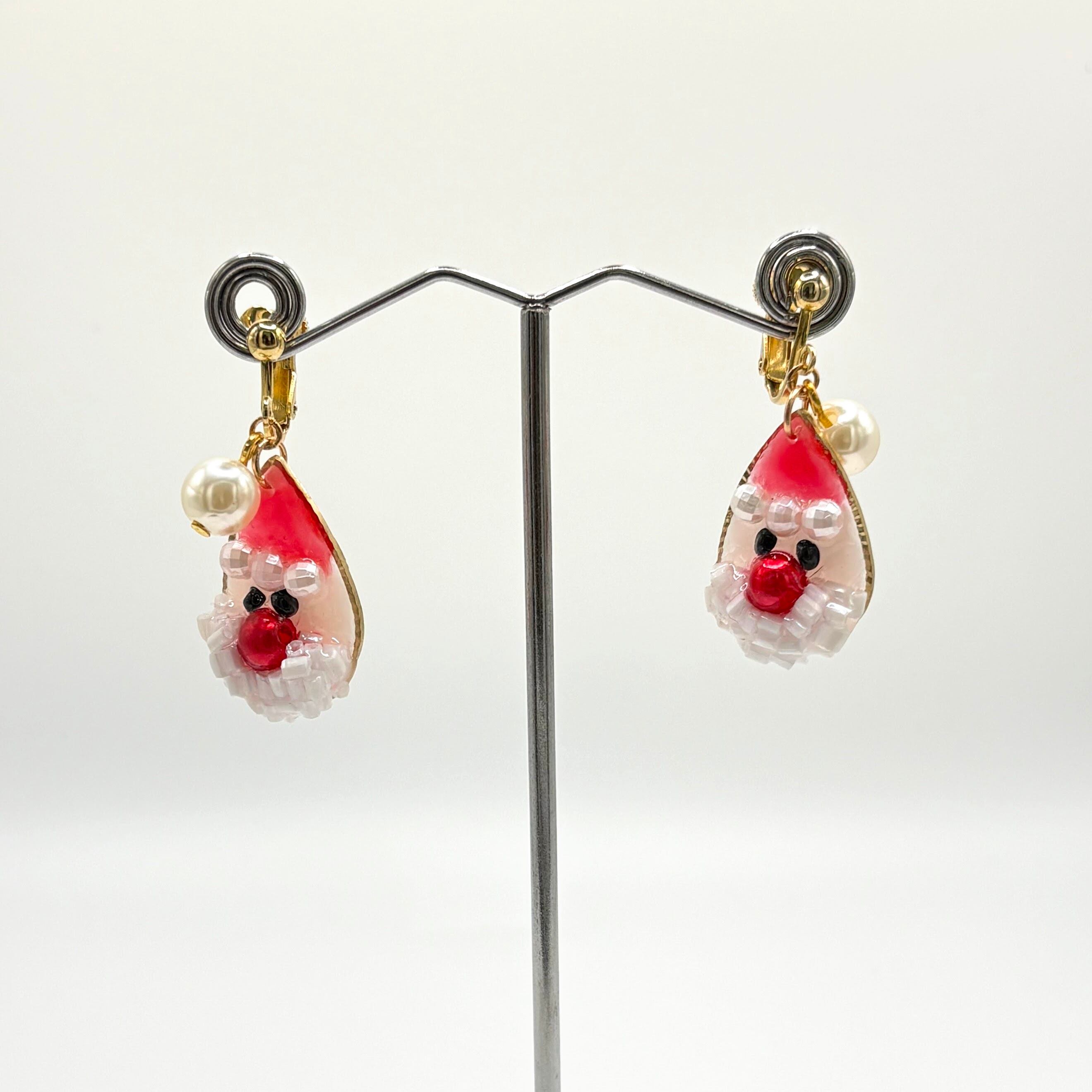 パールサンタ|レジン×パールビーズの愛らしいクリスマスイヤリング