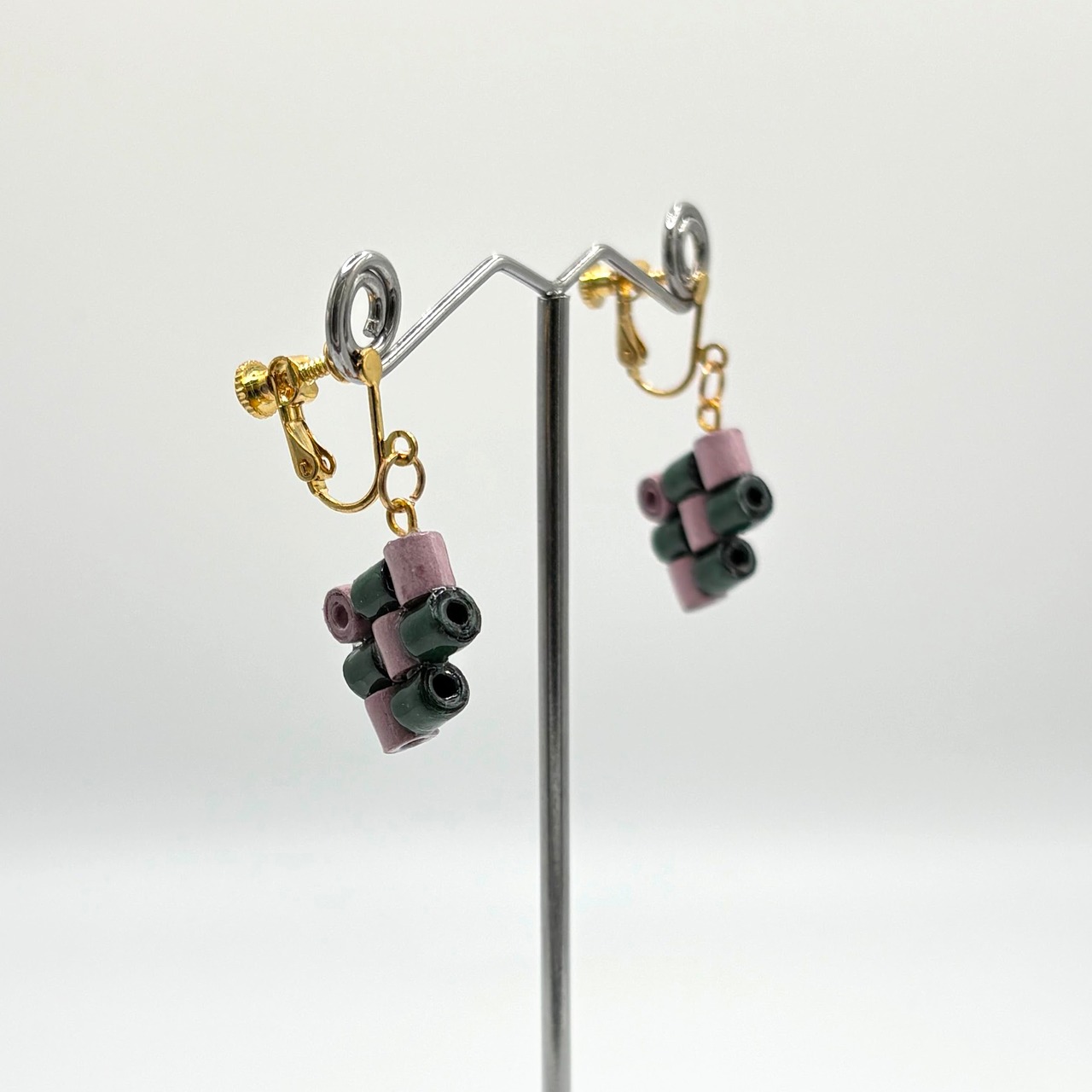 市松模様 スモーキーパープル ダークグリーン モダンイヤリング 和モダン 個性派アクセサリー チェック柄アクセ クラフト風イヤリング 大人カラー 静かな存在感 小ぶりイヤリング 普段使いアクセ ニュアンスカラー 落ち着いた色味 和柄アクセ ハンドメイド あいあいわーく 送料無料 ピアス オリジナル 金属アレルギー対応 金アレ対応 サージカル サージカルステンレス 和紙アクセサリー 折り紙モチーフ 和モダンアクセ 立体デザイン 大人和柄 紫系アクセサリー 秋色コーデ 和装にも合う 個性派アクセサリー ゆらゆら揺れる
