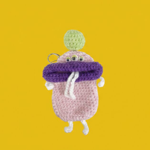 お口から出ている紐を引くと、鍵がモンスターのお口の中にスルスルと吸い込まれていきます。 柔らかい毛糸が鍵を包み込むので、バッグの中でお財布やスマホが傷つくのを防いでくれます。