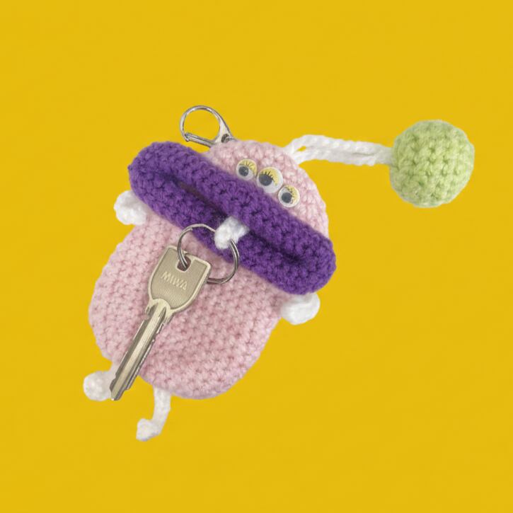 パクパクモンスター キーケース あみぐるみ キーホルダー ハンドメイド バッグチャーム ゆるかわ カラフル モンスター かぎ針編み 鍵入れ プレゼント プチギフト 個性的 レトロポップ ピンク パープル 3つ目 手編み 一点もの あいあいわーく