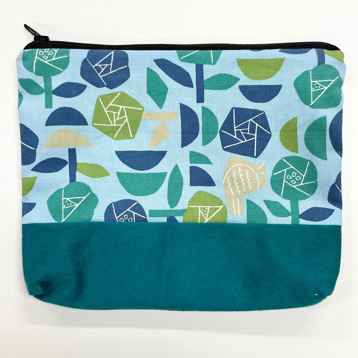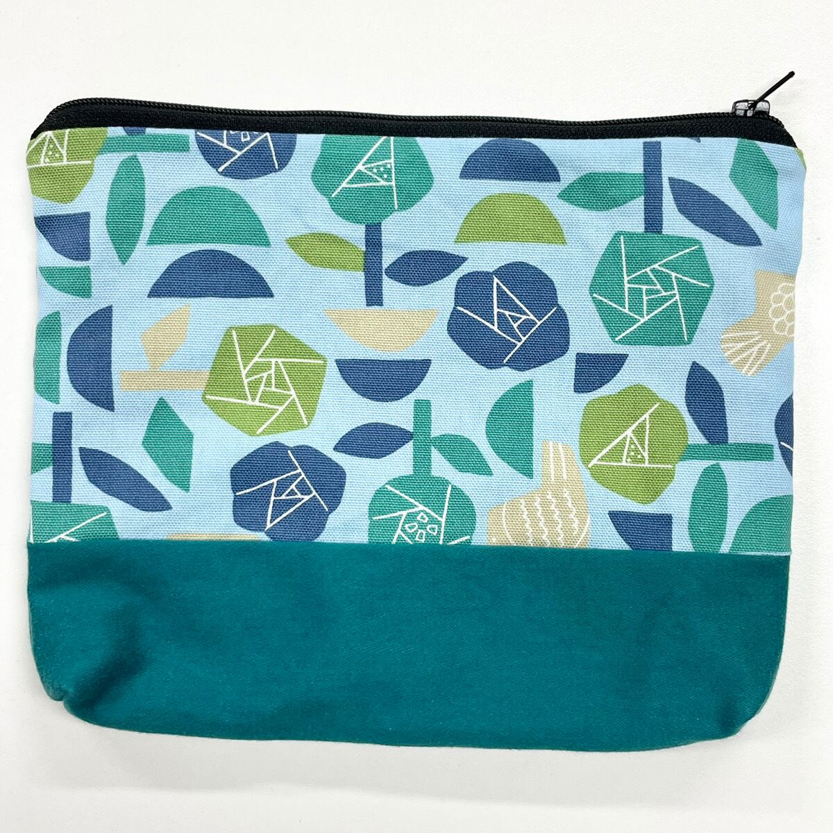 あいあいわーく ハンドメイド irodori ハンドメイドポーチ 青バラ柄 北欧風ポーチ ポップ柄 花柄ポーチ アートデザイン ブルーグリーン 個性派雑貨 布ポーチ 大人かわいい 小物入れ 化粧ポーチ 通帳ポーチ バッグインバッグ 幾何学模様 一点物 ファスナーポーチ プレゼントにおすすめ おしゃれポーチ グラフィカル