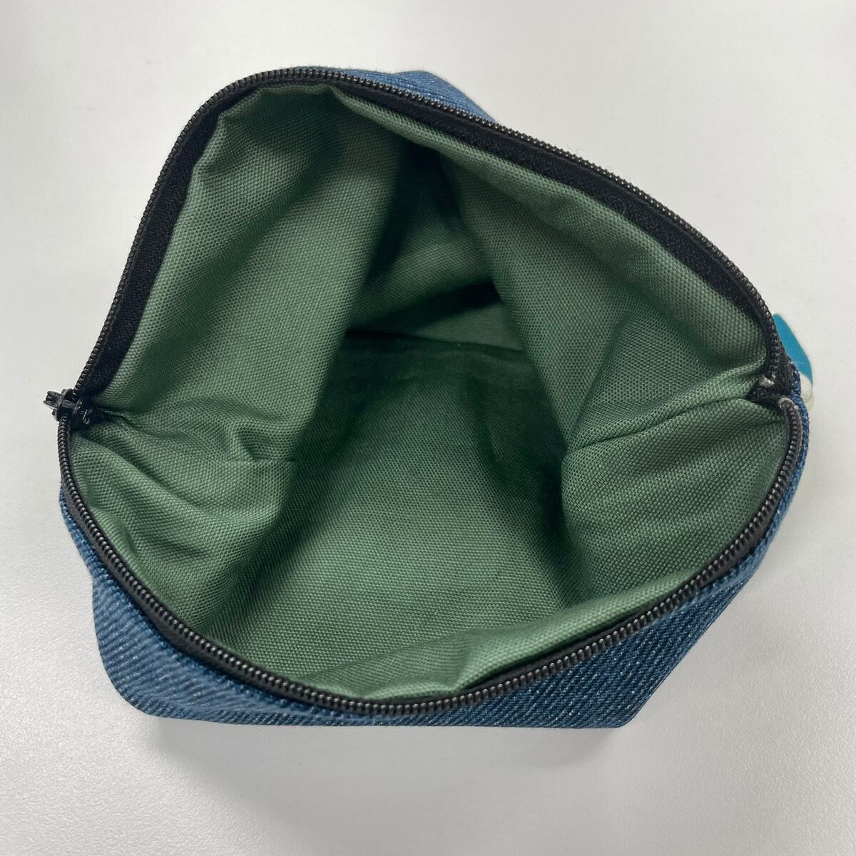 【北欧風ブルー×デニム】葉っぱ柄おしゃれポーチ