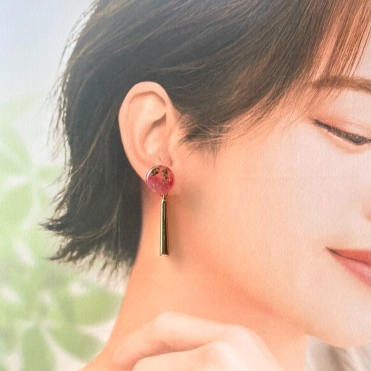 レジンで固定している(裏面)、または表面にレジンを使用している作品です。レジンアレルギーの方はご遠慮していただくことをお勧めします。