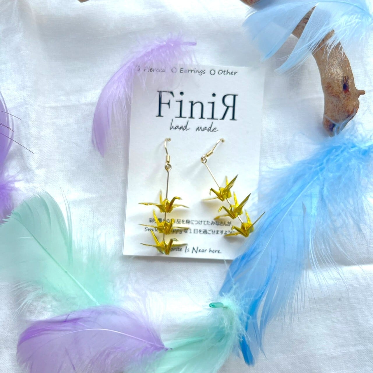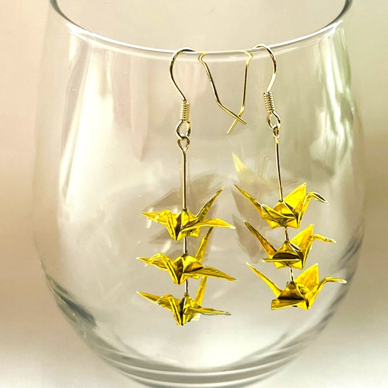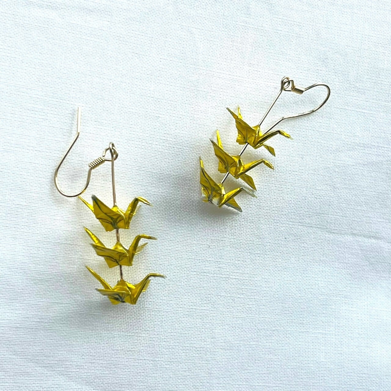 ハンドメイド あいあいわーく 送料無料 ピアス イヤリング 折り鶴ピアス 金色アクセサリー 和モダンアクセ 和装に合う 浴衣アクセサリー 縁起物アクセ 鶴モチーフ 揺れるピアス 華やかピアス 上品アクセサリー 軽やかアクセ 特別な日アクセ 着物アクセ 大人可愛いピアス 繊細デザイン
