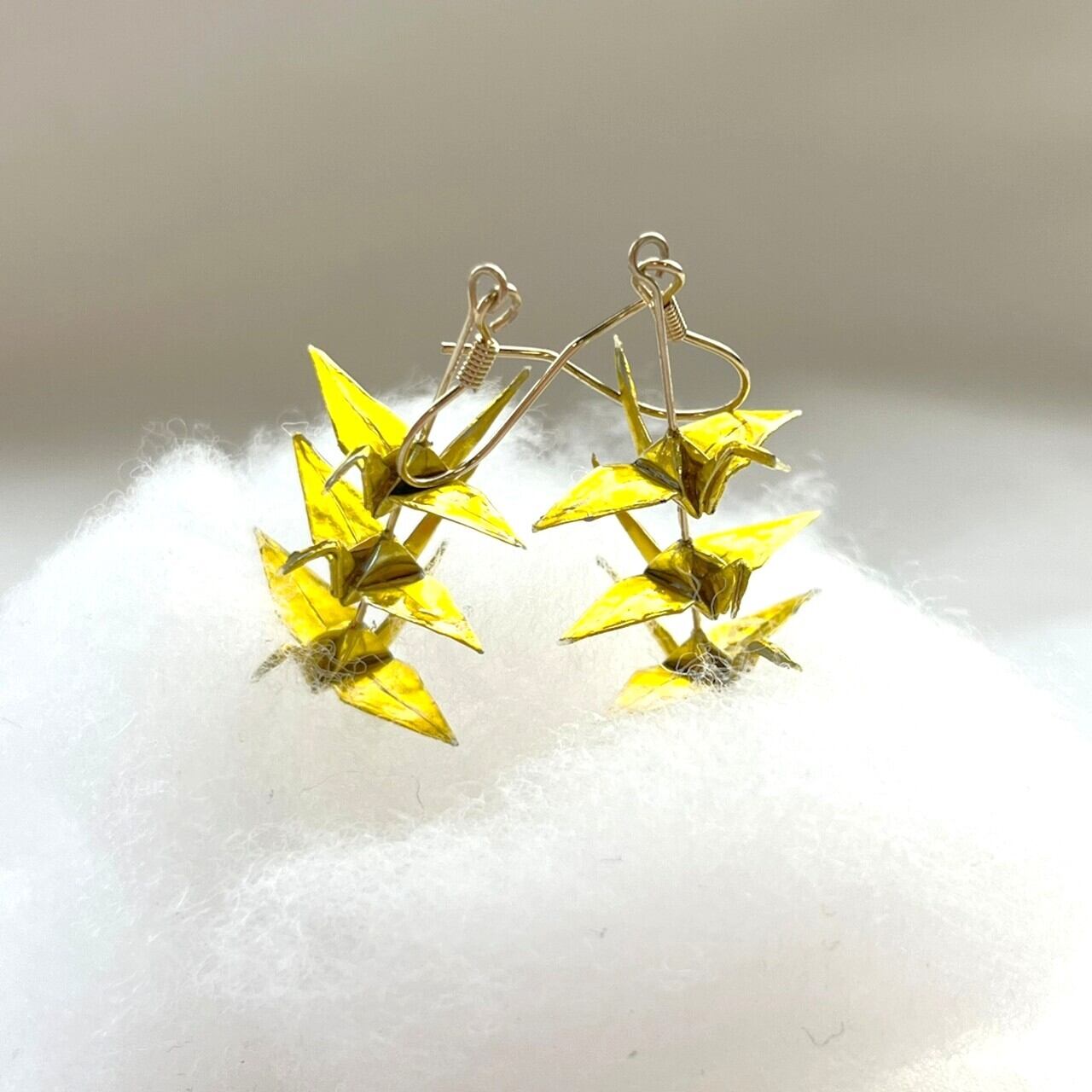 舞い翔ける金の折鶴ピアス~折り紙origami~