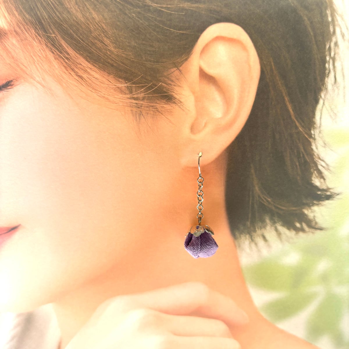 眠れる花蕾~竜胆~(薄紫)|和の気品を纏うちりめんピアス