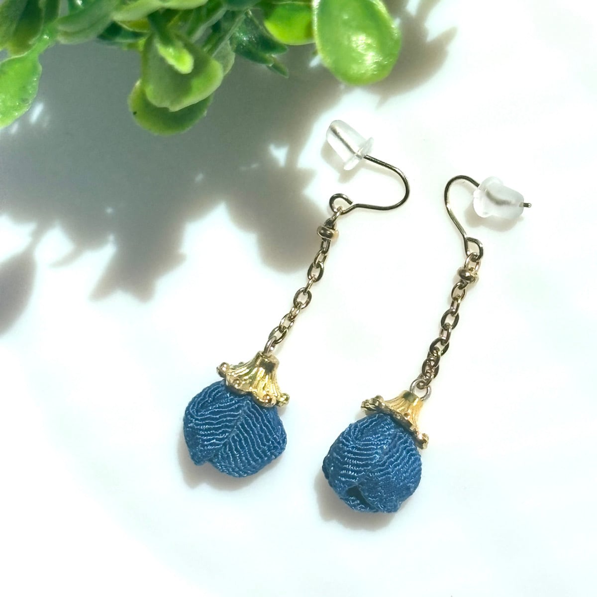 眠れる花蕾mini ~瑠璃~(青)|ちりめんが咲かせる上品な和のピアス