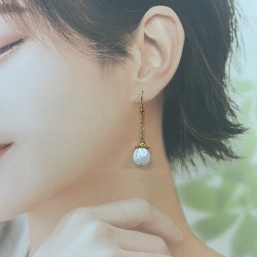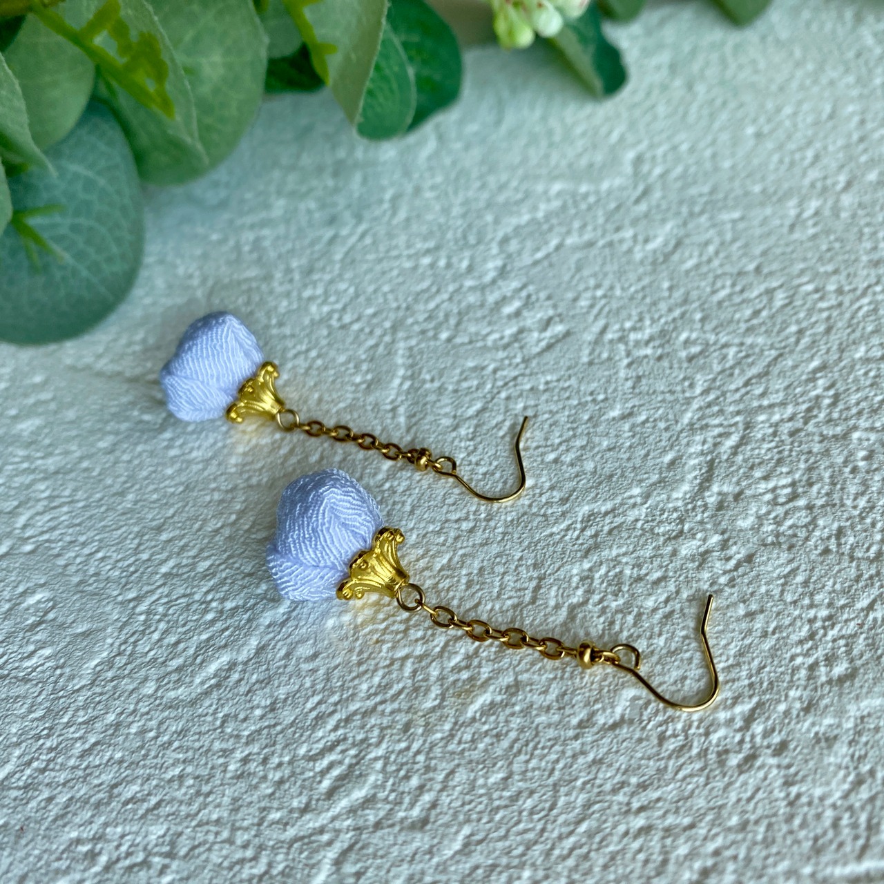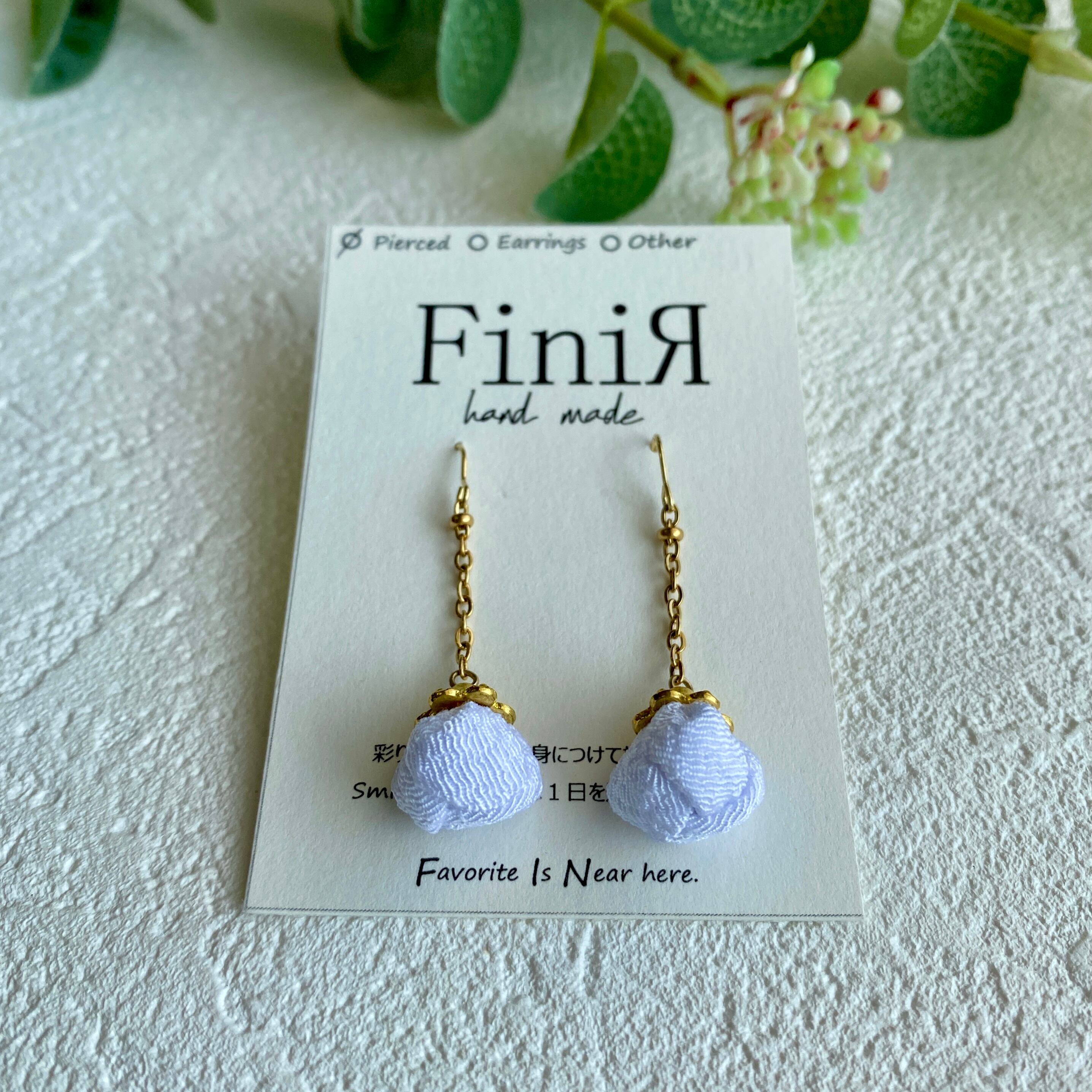 眠れる花蕾mini~白雪~(白)|和の気品を纏うちりめんピアス