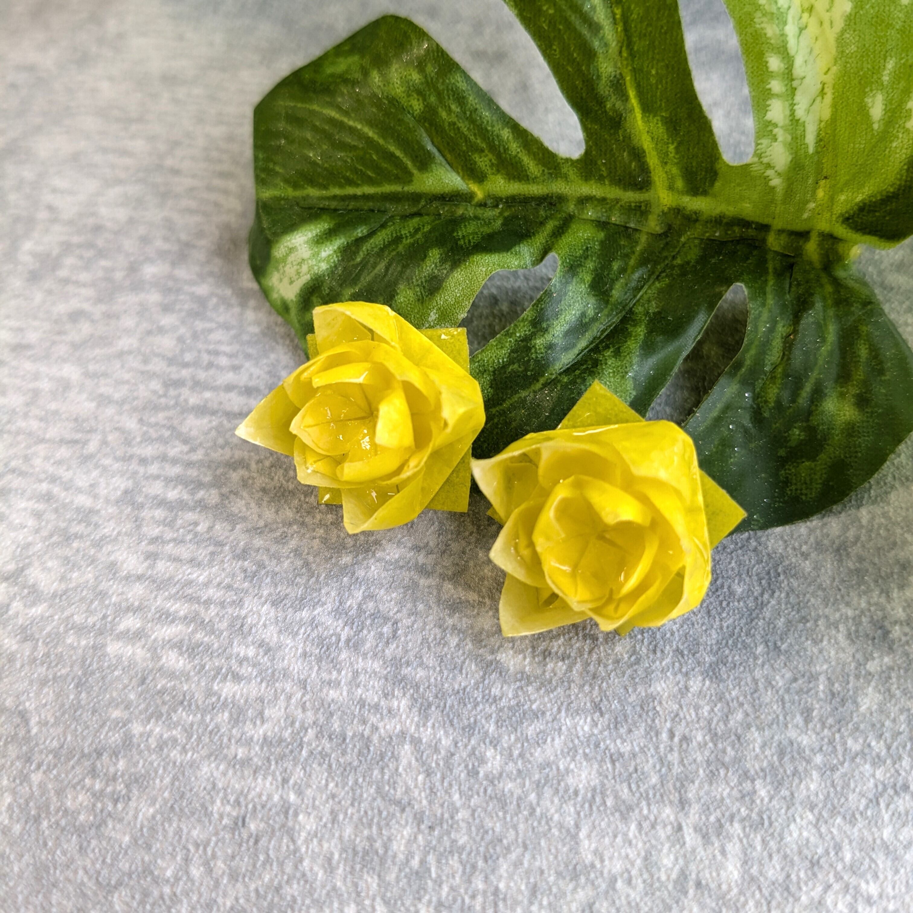 ハンドメイド あいあいわーく 送料無料 ピアス オリジナル 折り紙ピアス 花モチーフ イエローピアス フラワーアクセサリー 春アクセサリー 和モダンアクセサリー 上品かわいいピアス 軽やかピアス 華やかアクセサリー ナチュラルデザイン 和紙アクセサリー 大人かわいいピアス 和テイストアクセサリー ギフトアクセサリー 入学式アクセサリー