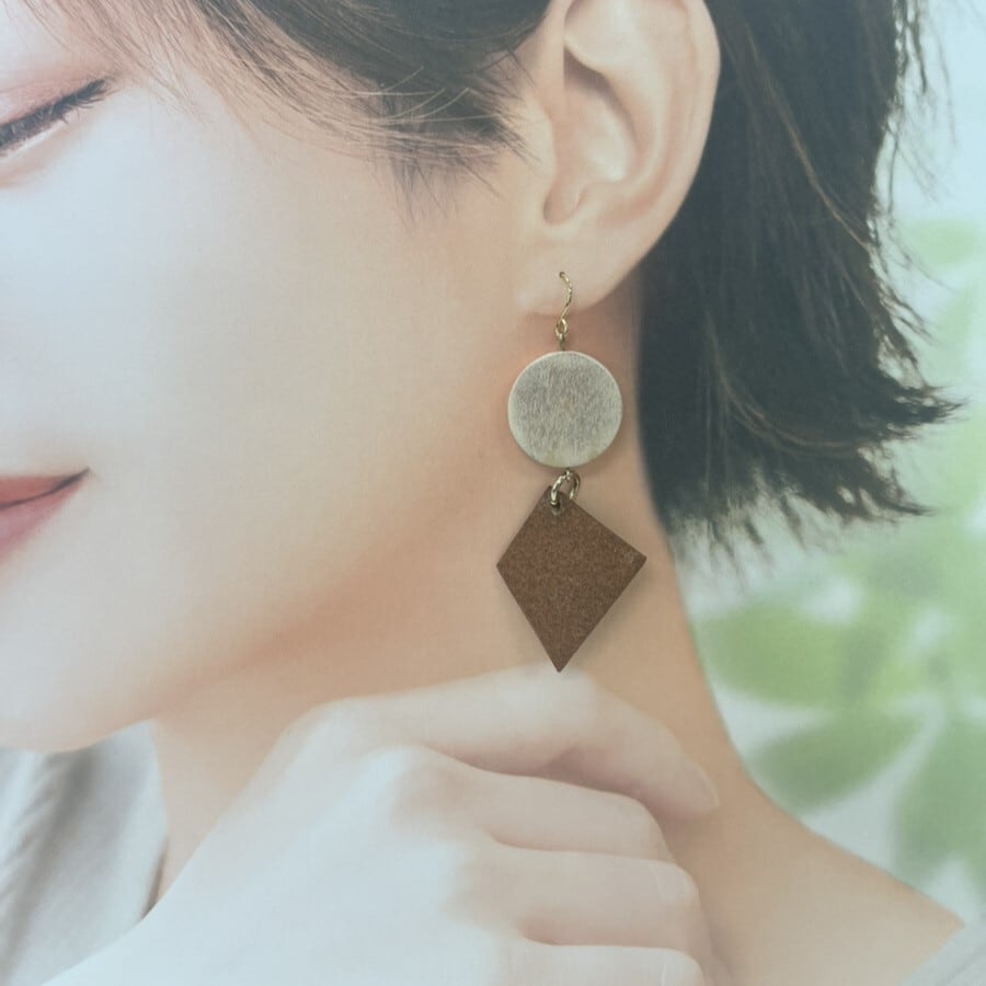 ナチュラルジオメトリー|ウッド×レザーのアシンメトリーピアス