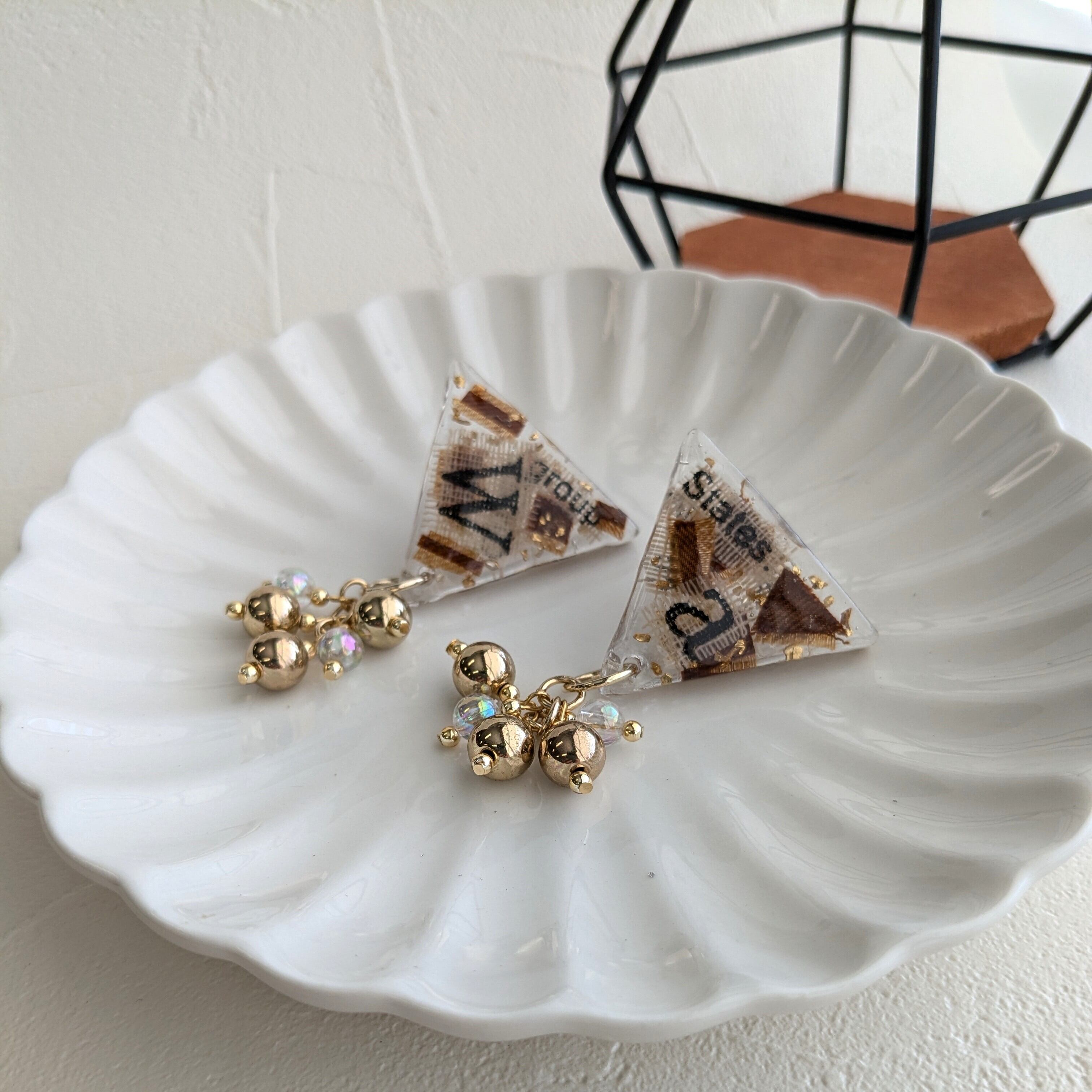 タイポグラム・トライアングル|デニム×レジン×ビーズのモードピアス