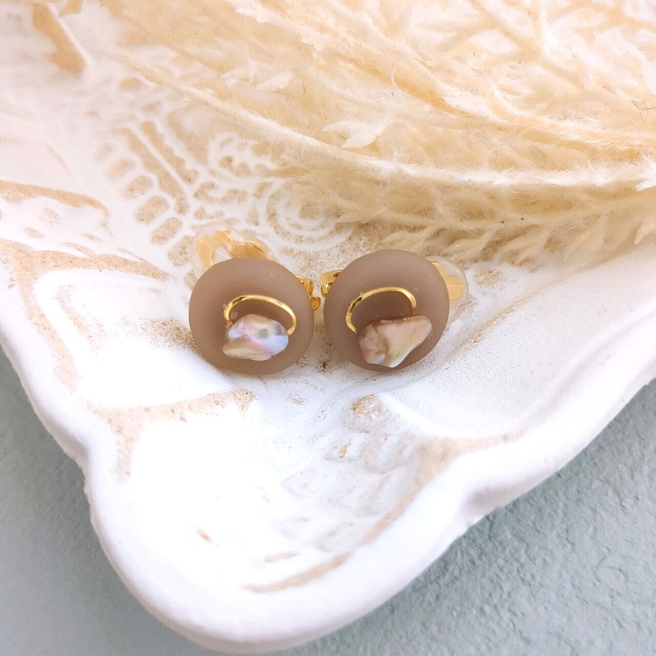 ハンドメイド あいあいわーく 送料無料 イヤリング オリジナル ピンクブラウンイヤリング シェルアクセサリー 上品イヤリング 大人かわいいイヤリング ゴールドアクセント パール風アクセサリー ナチュラルモード 落ち着いたカラー 小ぶりイヤリング フォーマルアクセサリー オフィスアクセサリー 大人フェミニン 華やかアクセサリー デイリーアクセサリー プレゼントにもおすすめ