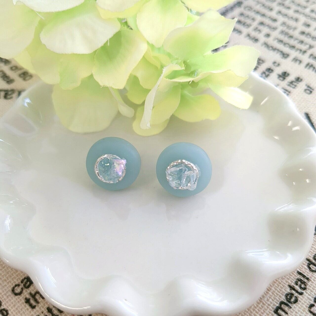 ハンドメイド あいあいわーく 送料無料 ピアス オリジナル プチギフト レジン ステンレス サージカルステンレス 金アレ対応 金属アレルギー対応 ミントピアス ブルーピアス シルバーアクセサリー 透明感アクセサリー 涼しげピアス 上品ピアス 大人かわいいピアス 春夏アクセサリー ナチュラルカラー 淡色アクセサリー 小ぶりピアス オーロラアクセサリー 爽やかデザイン デイリーアクセサリー プレゼントにもおすすめ