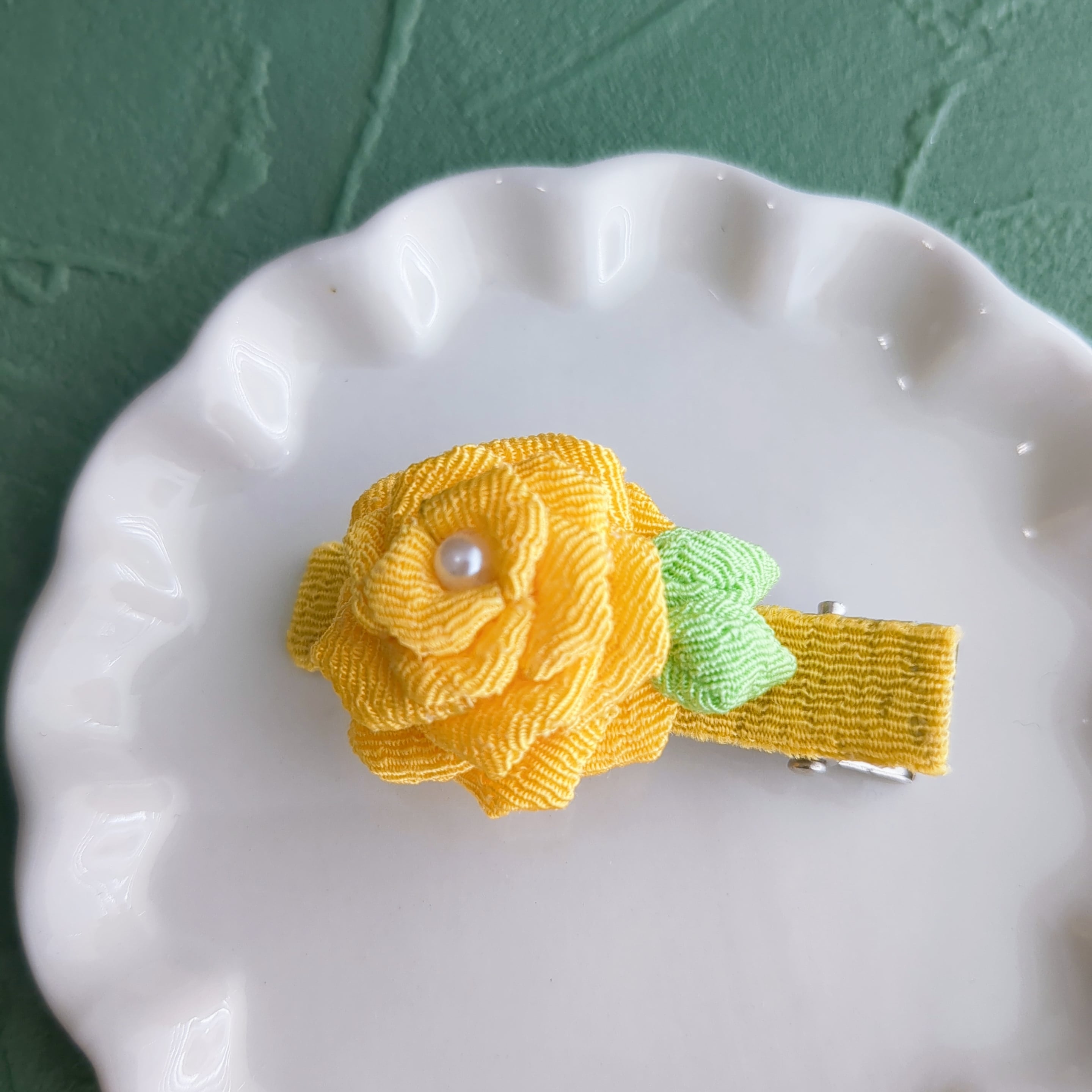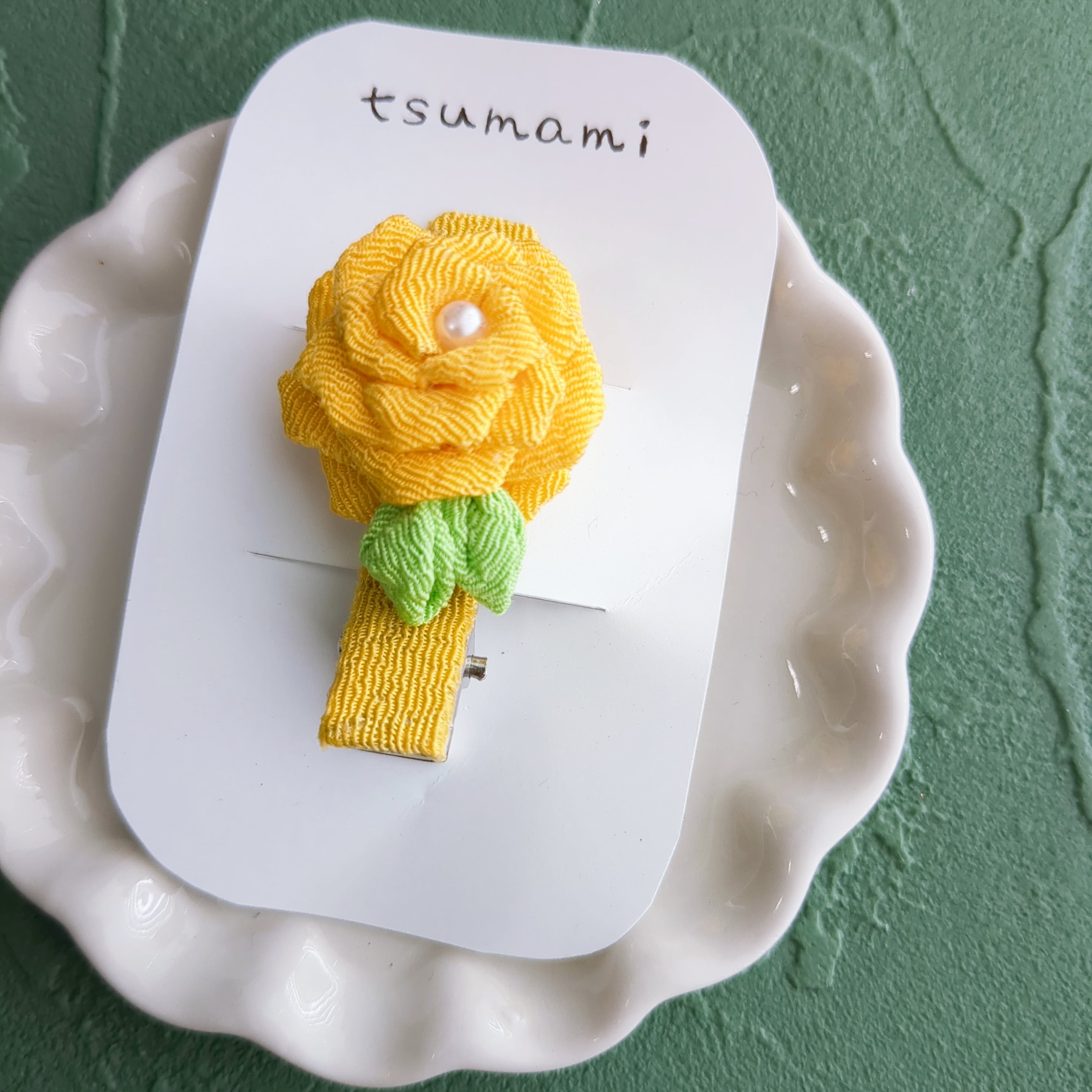 ハンドメイド あいあいわーく 送料無料 ヘアクリップ クリップ オリジナル 黄 つまみ細工 バラ 花 和 プチギフト プレゼント