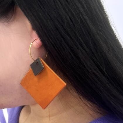 ハンドメイド あいあいわーく 送料無料 ピアス オリジナル レザーピアス ブラウンピアス 幾何学デザイン モードアクセサリー 大人カジュアル 上品デザイン スクエアピアス 個性派アクセサリー 秋冬アクセサリー ナチュラルカラー おしゃれピアス シンプルモード 軽いピアス プレゼントにおすすめ 大人スタイル